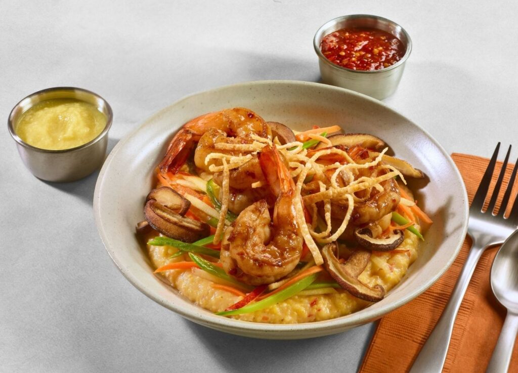 - For a brunch offering, top the shrimp and grits with a fried or soft poached egg. For lunch or dinner, offer customizable toppings like chili crisp or fried shallots.